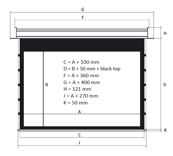 Экран с электроприводом встраиваемый Kauber InCeiling Tensioned BT Cinema, 122" 16:9 Peak Contrast S, область просмотра 152x270 см. дроп 50 см., длина корпуса 310 см.