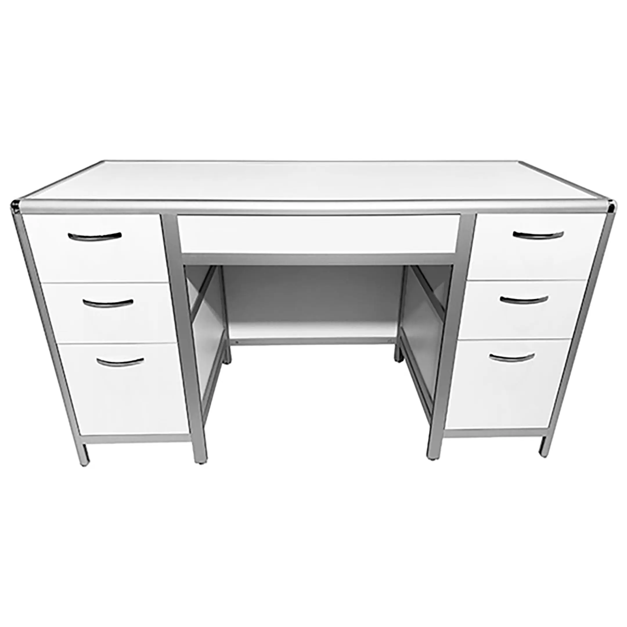 Стол лабораторный MED 10.007al (белый) представляет собой идеальное решение для организации продуктивного и удобного рабочего места сотрудников в лабораториях и медицинских учреждениях. Модель оснащена двумя боковыми тумбами, каждая с тремя выдвижными ящиками. Каркас выполнен из алюминиевого профиля, столешница из ЛДСП толщиной 16 мм.