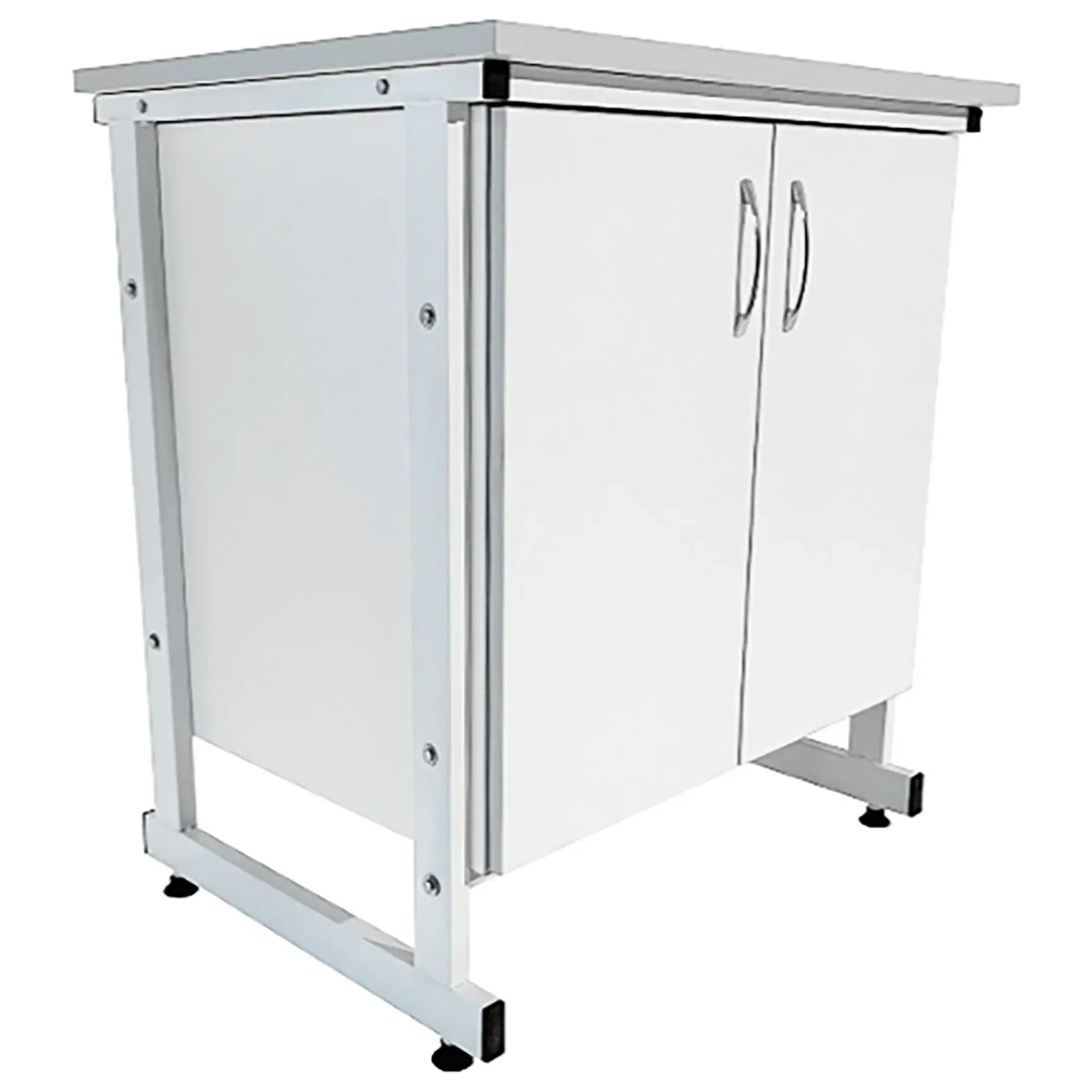 Стол-тумба лабораторная ТЛ 18.001 (белый) — это функциональное решение для хранения различных предметов, инвентаря и приборов в лабораторных условиях или медицинских учреждениях. Модель оснащена тумбой с двумя створками и двумя внутренними полками (328х480х16 мм). Каркас выполнен из стального профиля, столешница из ЛДСП толщиной 22 мм.