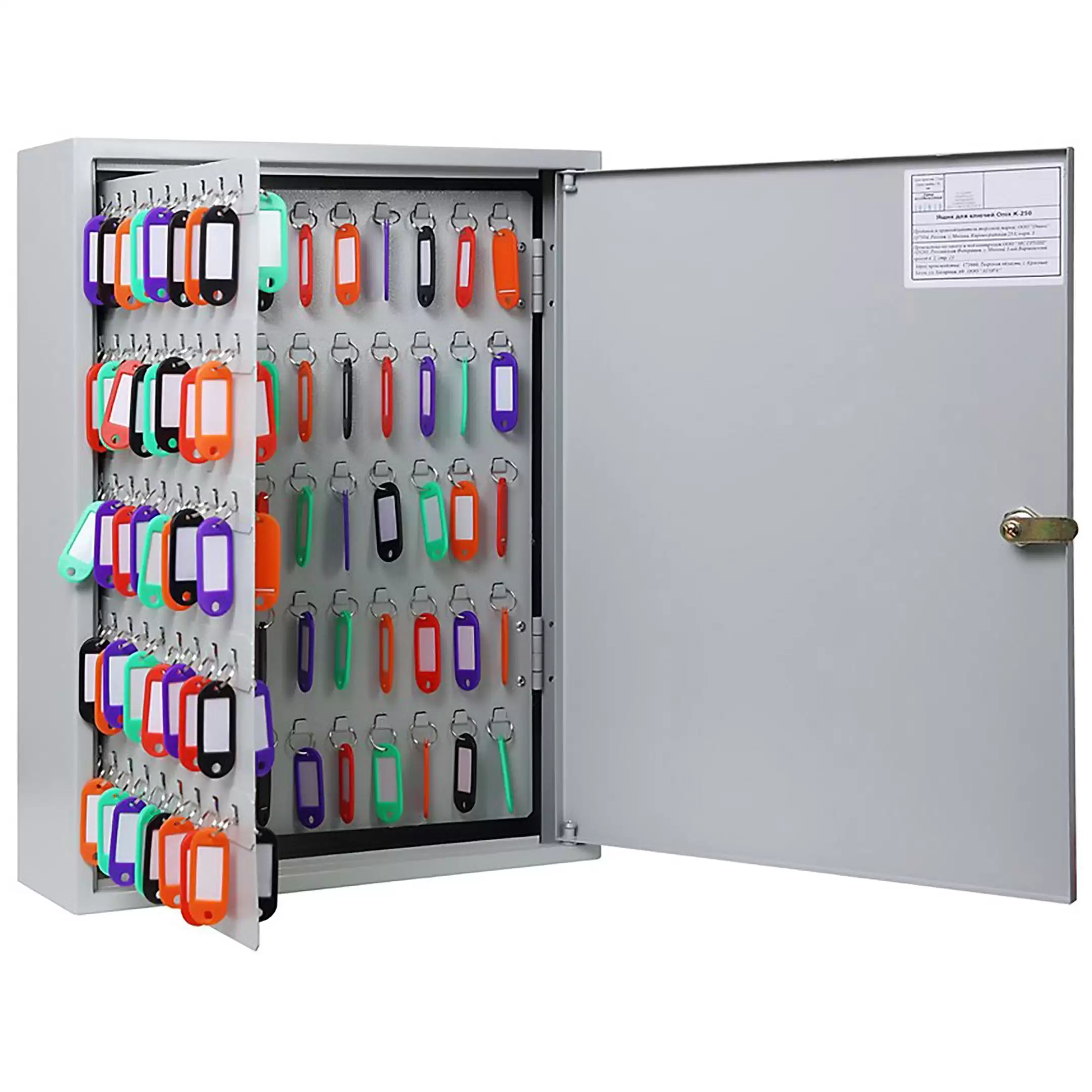 Ключница K-250 (с брелками) — это премиальная и высокопроизводительная система для организации и безусловного контроля самого обширного ключевого хозяйства на крупнейших объектах. Модель K-250 является флагманской в линейке, обладает наивысшей вместимостью, комплектуется расширенным набором брелков и отличается безупречным качеством изготовления, что позволяет осуществлять централизованное, безопасное и предельно упорядоченное управление тысячами ключей. Ключница предназначена для установки высочайших стандартов безопасности, порядка и оперативности доступа в критически важных центрах контроля.