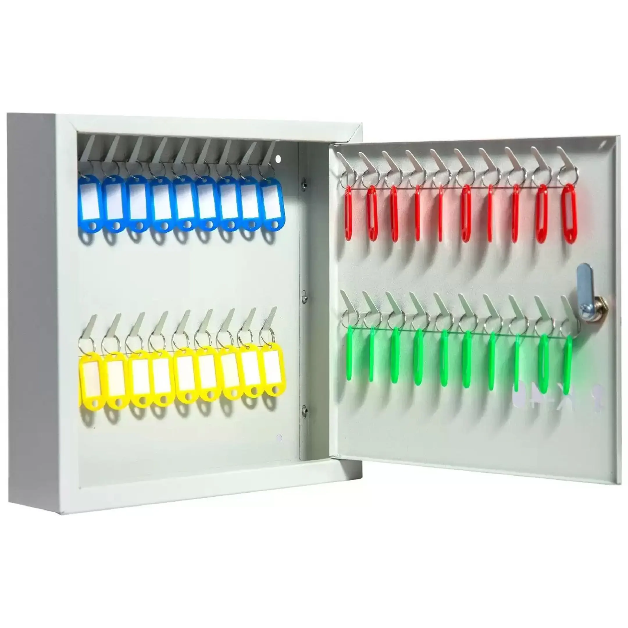 - Профессиональный вид и усиленный контроль — аккуратно подписанные бирки создают образ порядка и системного подхода, что важно для рабочих зон. Надежный металлический корпус с замком гарантирует сохранность. Такая система демонстрирует высокий стандарт внутренней организации.