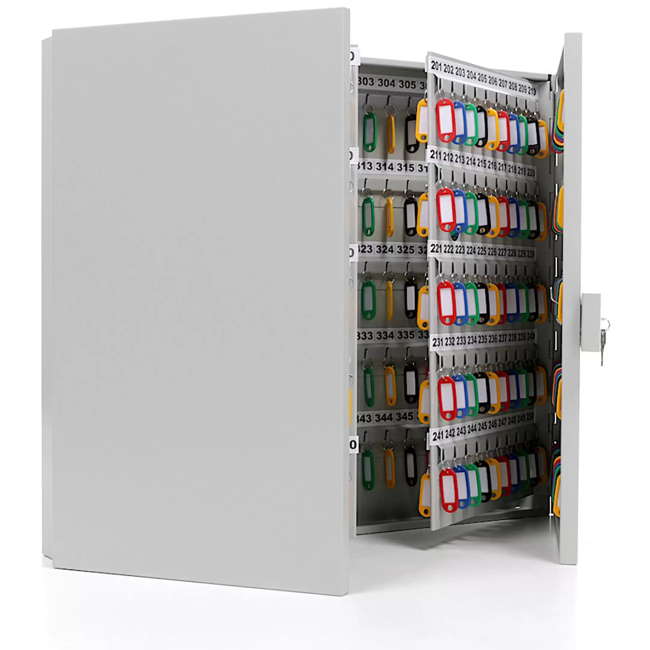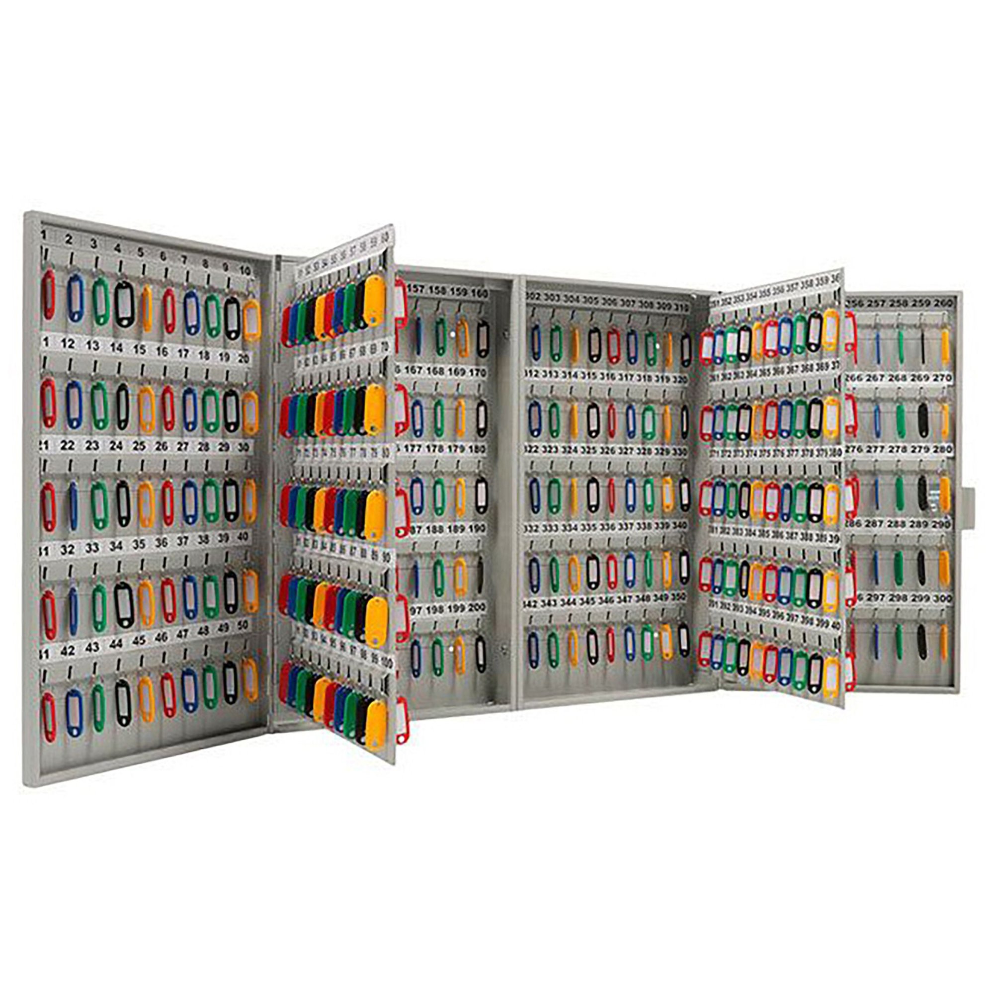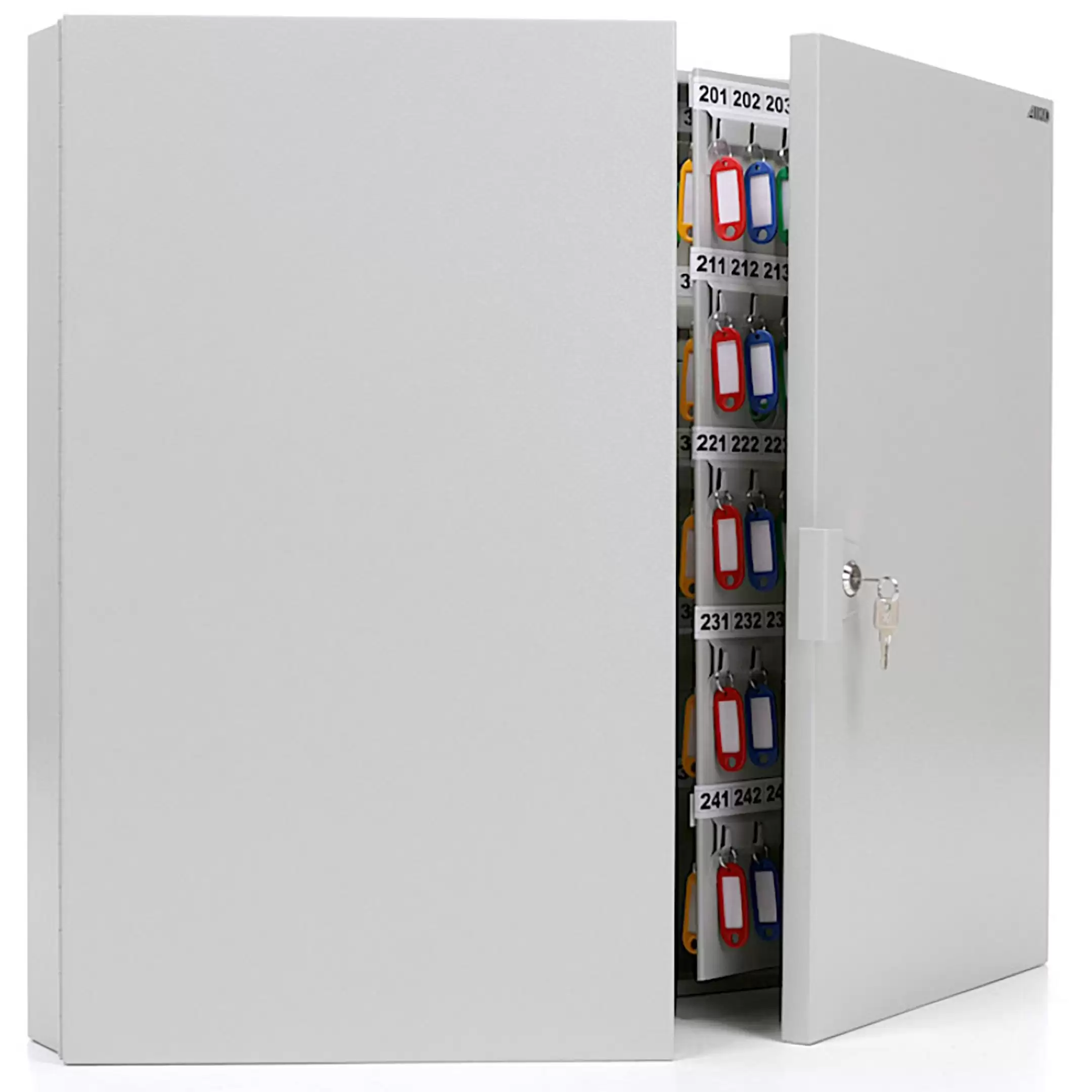 - Система строгого учета и оперативного поиска — четыреста пронумерованных ячеек и полный комплект брелков создают четкую структуру. Это основа для ведения детального журнала, быстрого поиска любого ключа по номеру и контроля над цепочкой ответственности.