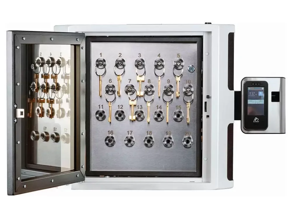 - Готовность к работе "из коробки" — комплект включает ключницу, терминал управления и полный набор из 20 индивидуальных брелков, что позволяет немедленно приступить к эксплуатации после установки, без докупки совместимых компонентов и настройки совместимости.