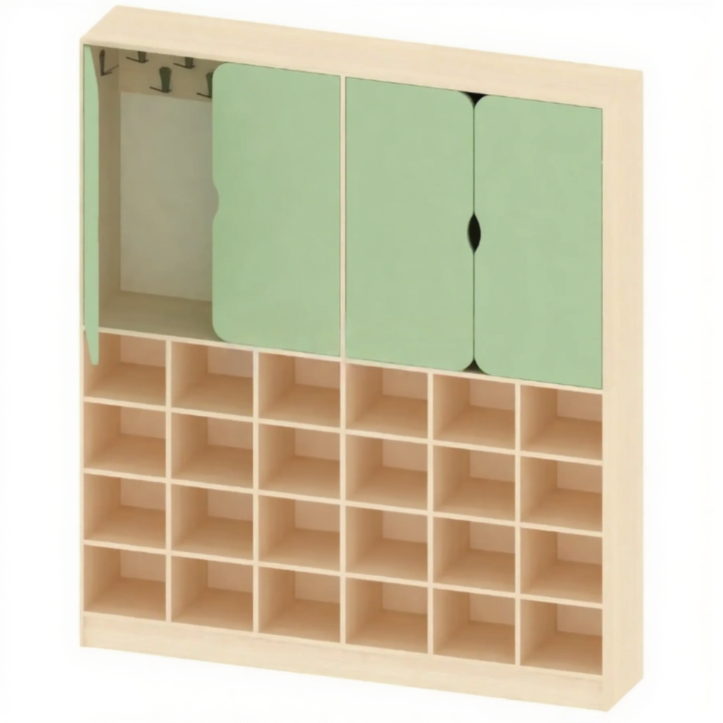 - Универсальность применения — подходит для хранения сменной обуви и одежды в школах, личных вещей сотрудников в офисе, спортивной формы в раздевалках, инструментов в мастерских или материалов в творческих студиях.