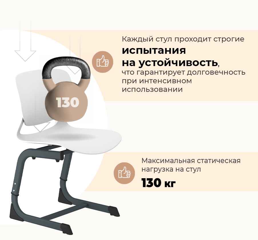 • Пластиковое сиденье и спинка — прочные, лёгкие, влагостойкие и легко очищаемые материалы.