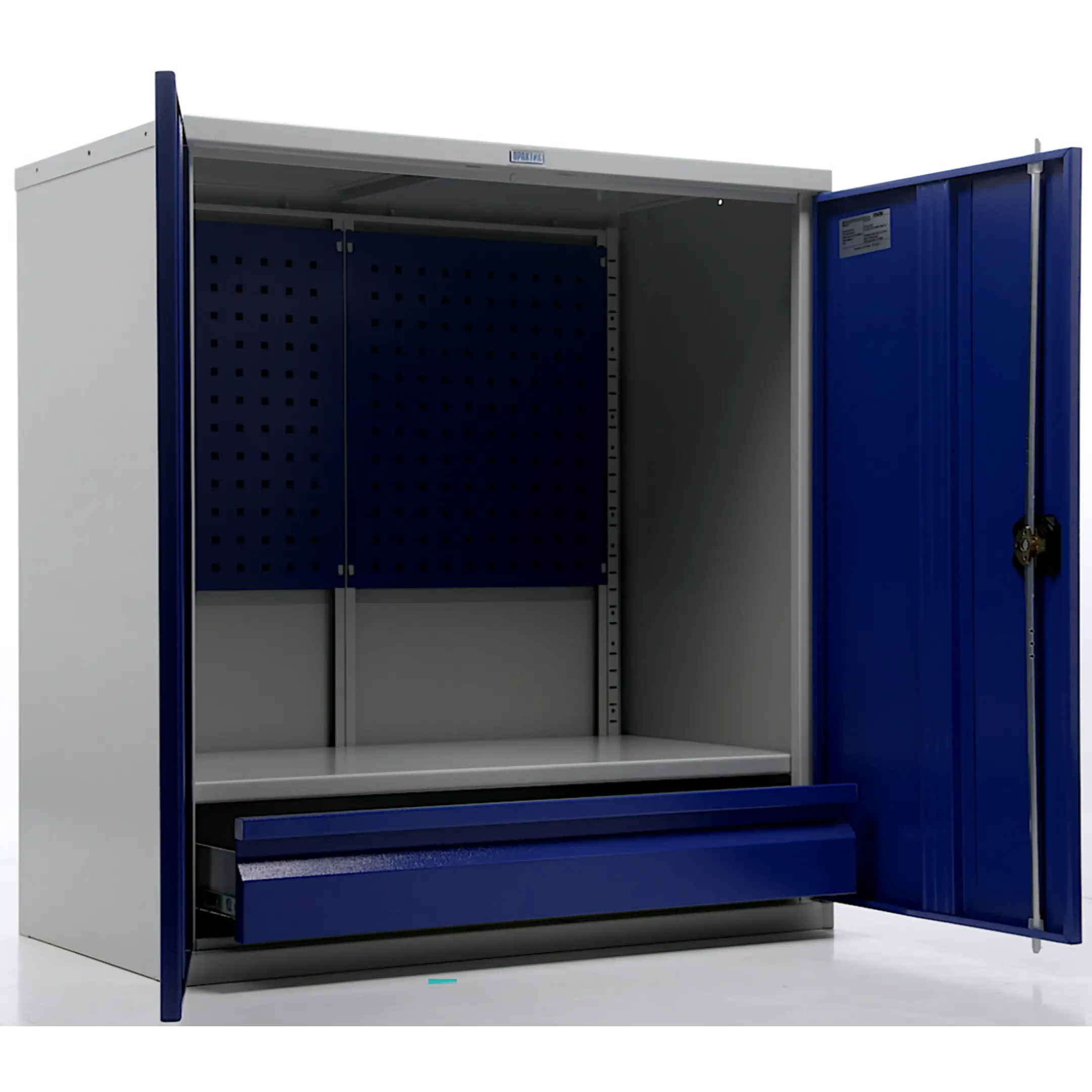 - Оптимизированная организация и максимальная вместимость — шкаф спроектирован для эффективного использования пространства. Комбинация выдвижных ящиков разной высоты и отделений с полками позволяет рассортировать инструмент и оборудование любого размера и веса: от мелких сверл и метизов до крупных электроинструментов и измерительных приборов. Каждому предмету находится свое логичное место.