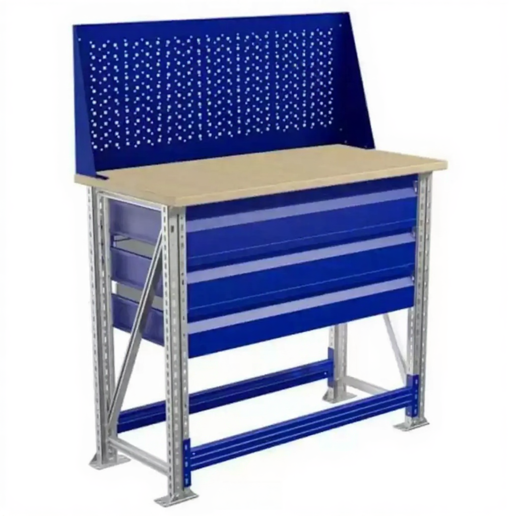 - Компактные размеры — столешница 1000х500 мм позволяет разместить верстак даже в небольших помещениях.
