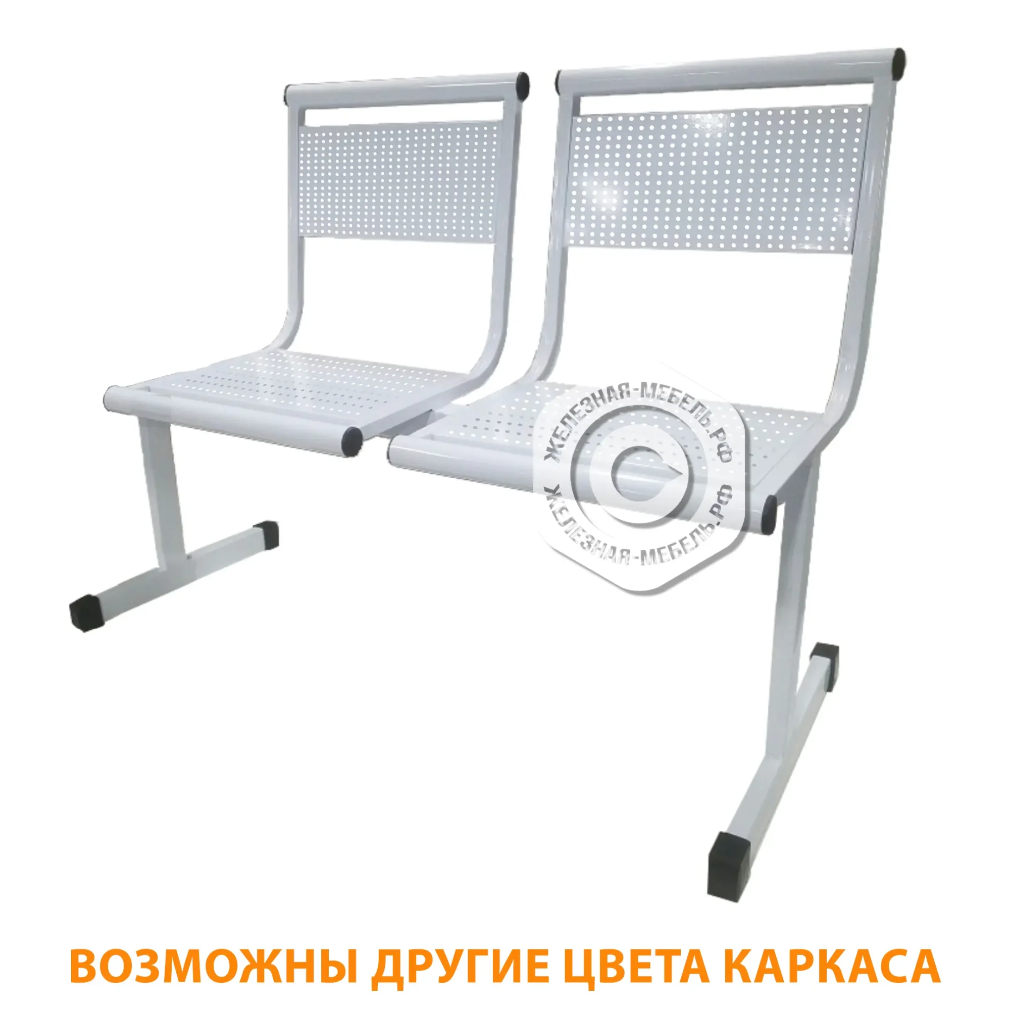 Секция стульев Стл-14.2 (2 секции) сидение перфорированный металл (каркас белый, сидение белое)