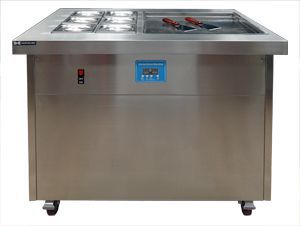 Особенности 6 встроенных отсеков для ингредиентов. 2 компрессора LG QKS164PMB (хладагент R410a) Независимое охлаждение отсека с ингредиентами. Две лопатки в комплекте. 4 колеса, 2 из них с тормозом. Описание Фризеры для жареного мороженого Hurakan HKN-FIC50SXL позволяют легко и просто готовить "жареные" роллы вкуснейшего и диковинного десерта. Аппараты прекрасно подходят для праздничных мероприятий под открытым небом, для использования в торговых центрах и на ярмарочных площадках.
