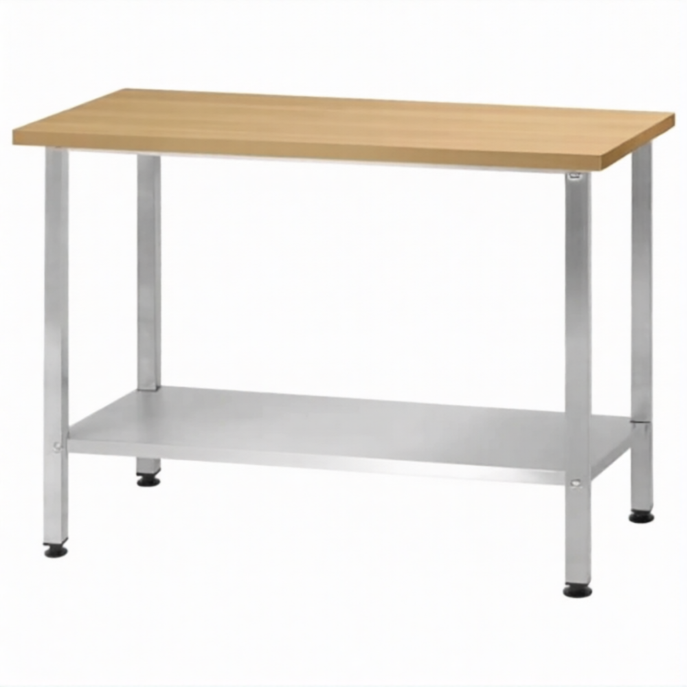 Стол кондитерский СПРн 860х1500х800 «Norma Inox» бук/40 (полка сплошная; ножка проф., тр. 40х40)