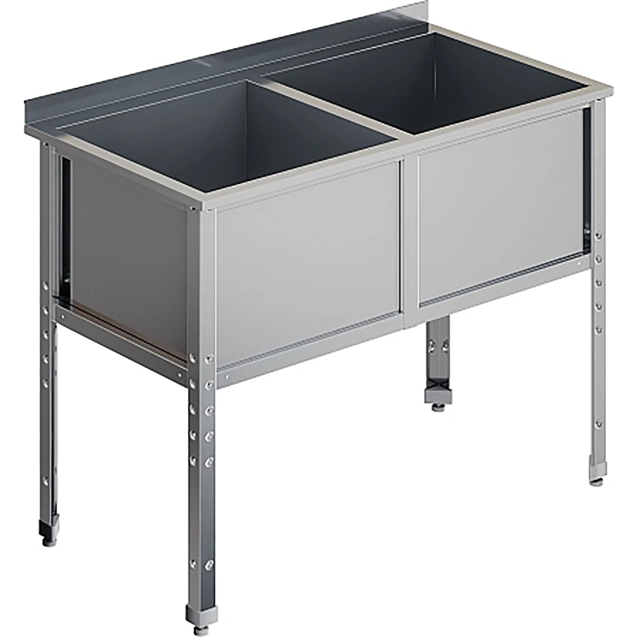 Ванна моечная двухсекционная с бортом ВМС-2/4-Б-ЭЦ разработана для применения в моечных отделениях предприятий общепита и торговли различного формата, пищевых производств и пищеблоков для мытья посуды, кухонного инвентаря, продуктов питания и рук персонала.