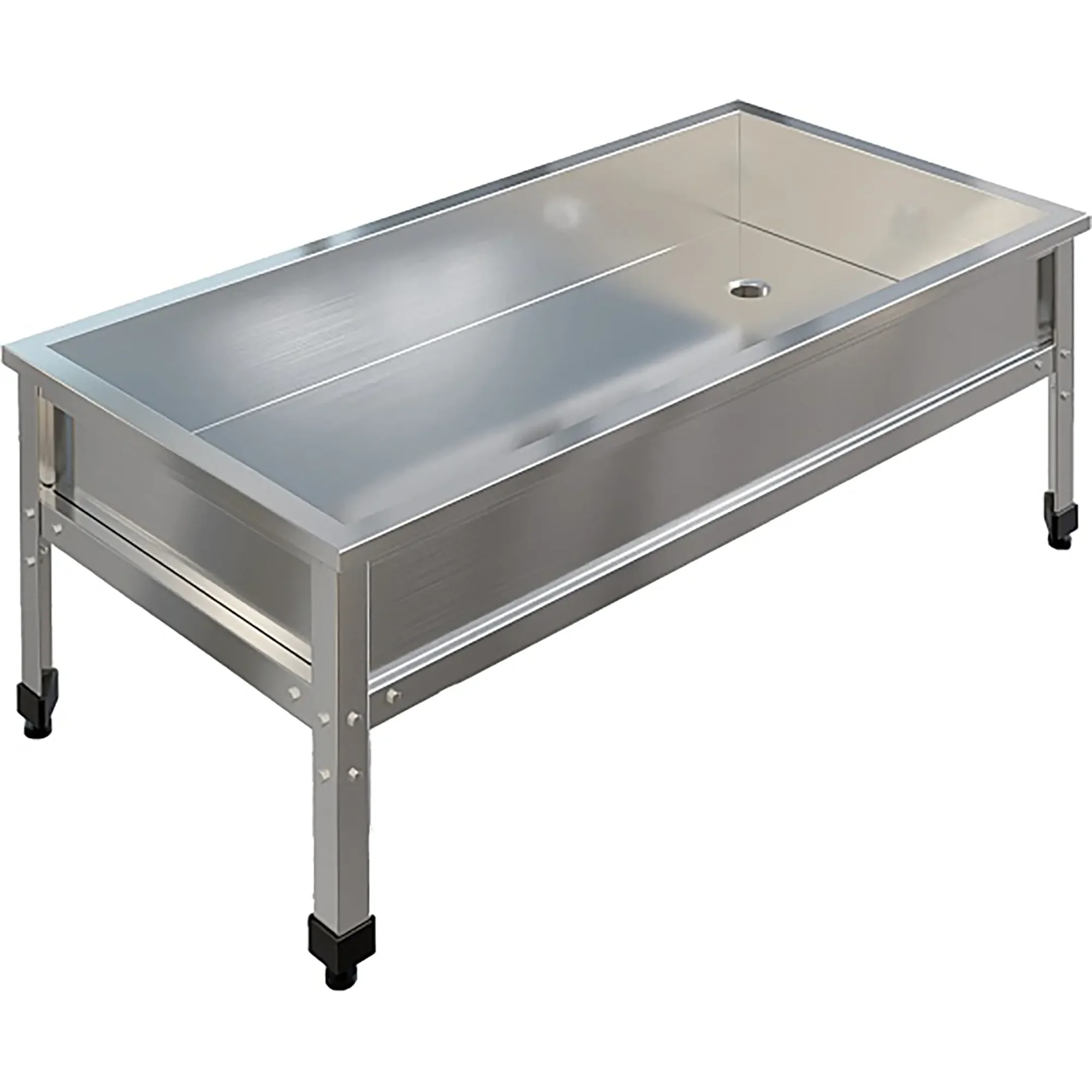 Ванна моечная низкая ВМСН-12/8/4-ЭЦ разработана для применения в производственных и моечных отделениях предприятий общепита и торговли различного формата, пищевых производств и пищеблоков для мытья и дезинфекции уборочного инвентаря, посуды и кухонных принадлежностей.