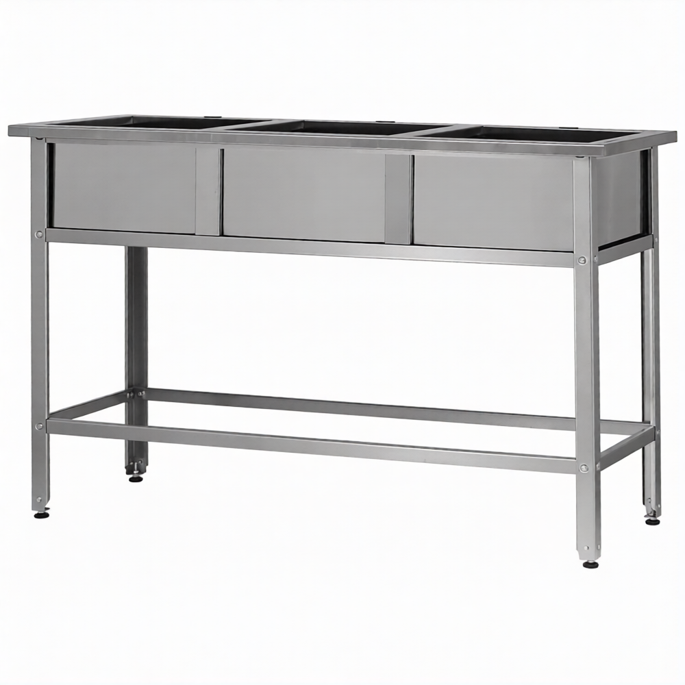 Ванна моечная ВМСн 530/3  3 м/о 430х430х300 (полка с 2-мя отв., борт; ножка угл.)