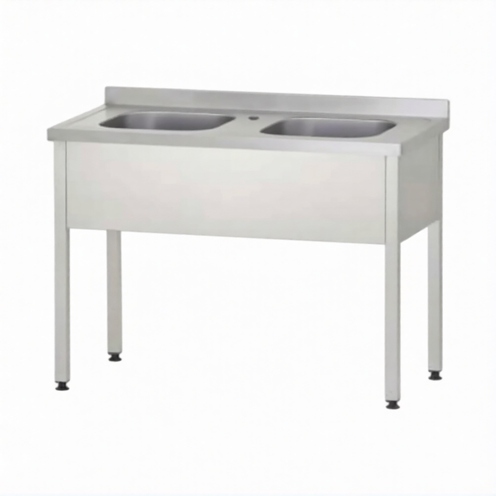 Ванна моечная ВМЦп 860х1200х600  2 м/о 250х500х400, борт, отв. д/смесит.
