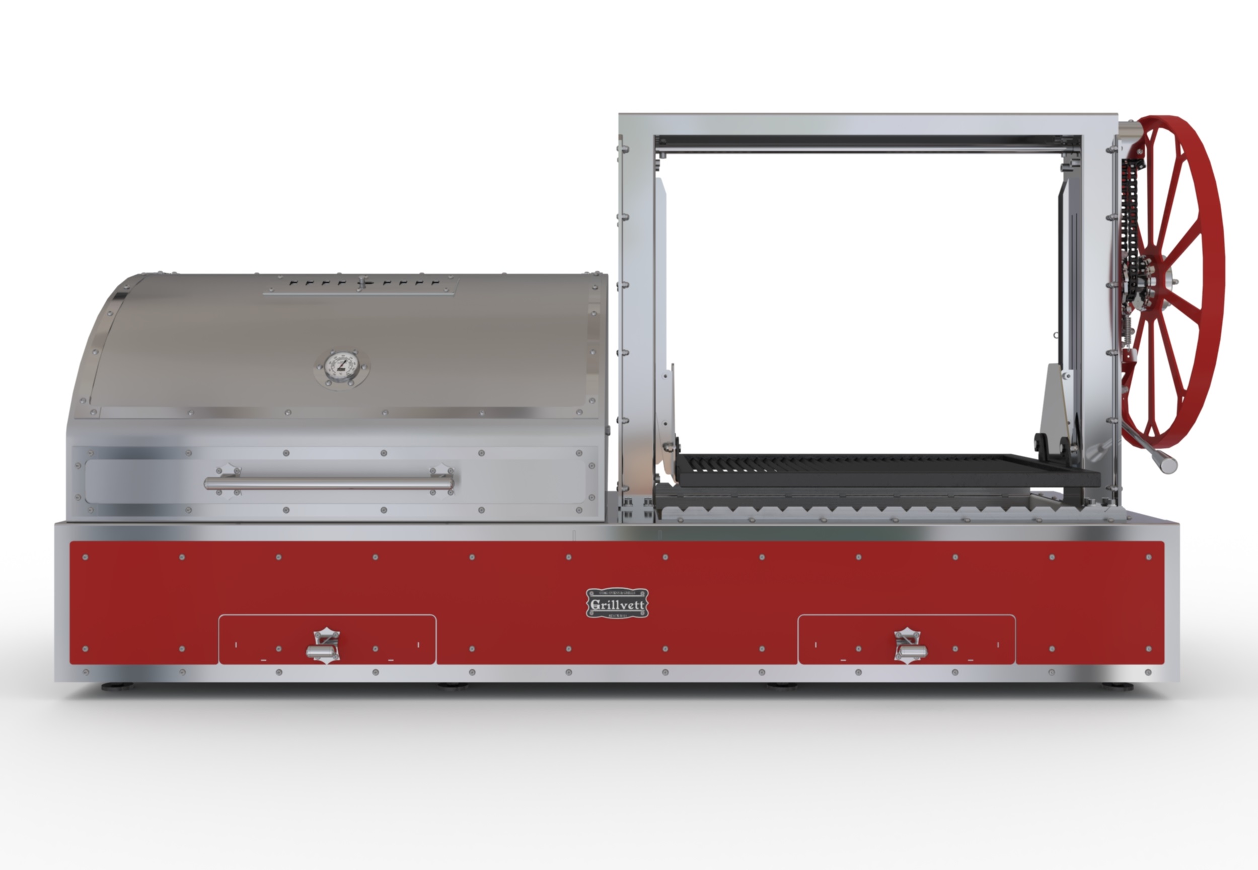 Гриль угольный GRILLVETT CORVETTE 1880 — это многофункциональное профессиональное оборудование для предприятий общественного питания, предназначенное для жарки мяса, птицы, рыбы и овощей, а также для горячего и холодного копчения. Модель оснащена двумя рабочими зонами и крышкой-смокер.