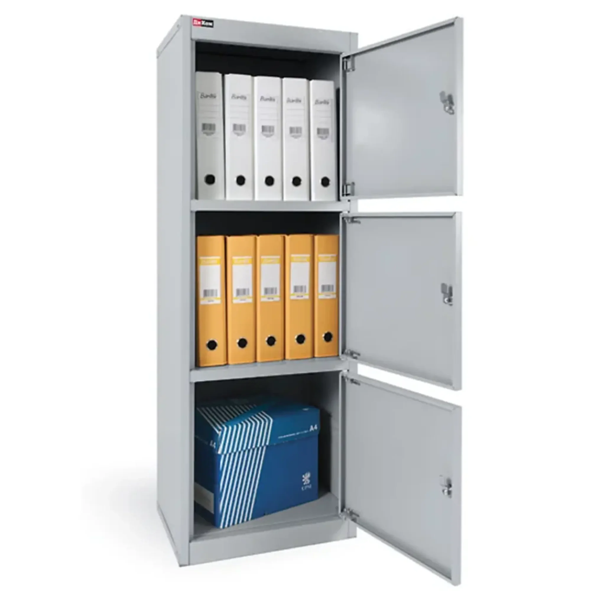 - Максимальная универсальность и свобода планирования — полностью свободное внутреннее пространство без стационарных полок позволяет хранить предметы любого размера и формы: от крупного оборудования и техники до спортивного инвентаря, коробов, спецодежды и хозяйственных принадлежностей, что делает шкаф идеальным решением для разнородных задач хранения.