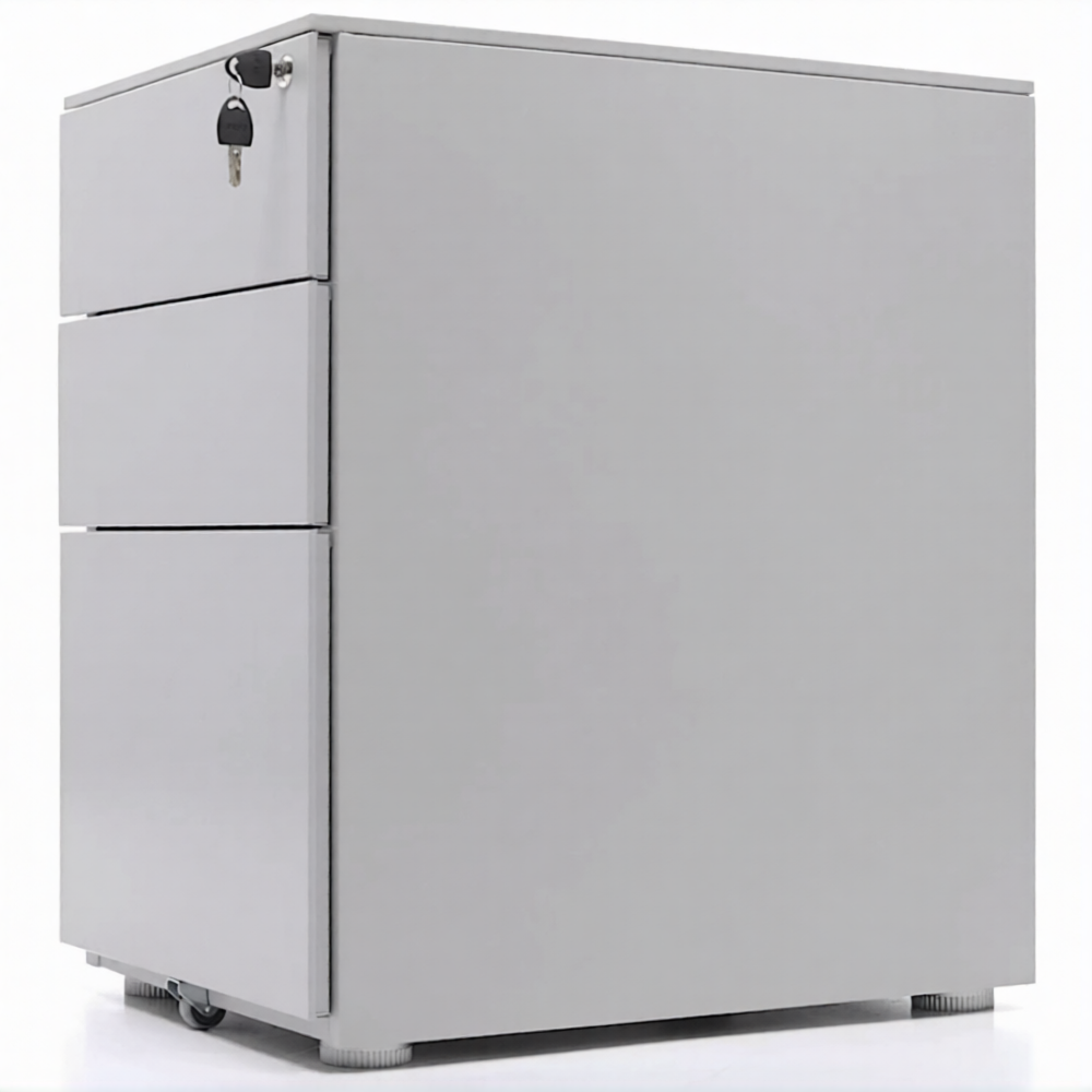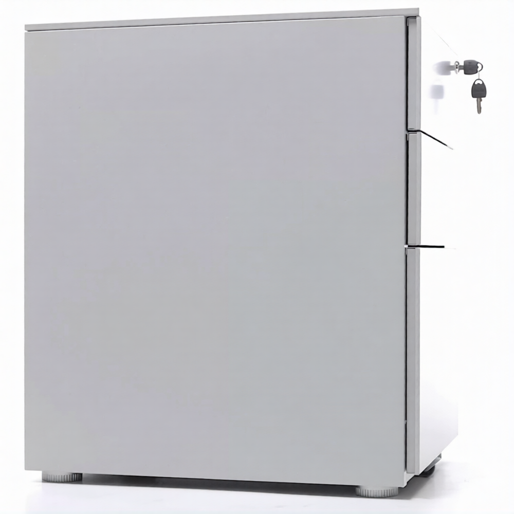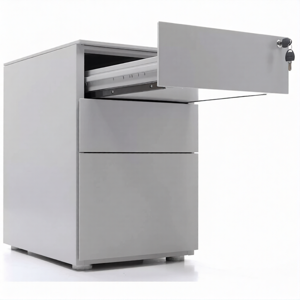 Опции: пластиковые лотки и металлический ящик для канцелярских принадлежностей и других предметов. Возможность комбинирования цветов: корпус + фасады ящиков и крышка (конструкция тумбы металл+металл). Или отделка фасадов ящиков и крыши тумбы ламинированной плитой ЛДСП (конструкция тумбы металл+ЛДСП)