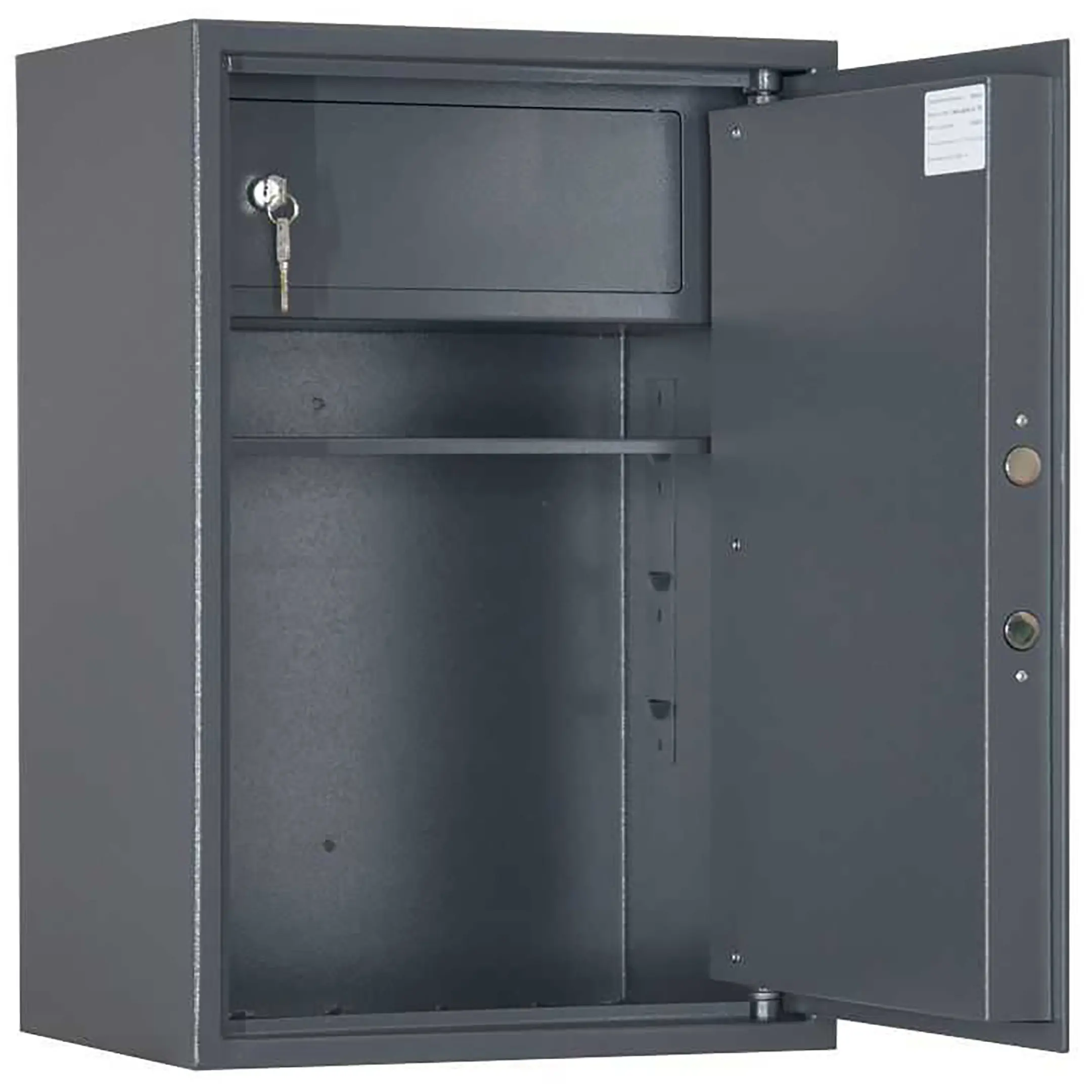 • Сейф односекционный, оснащен одной съемной полкой и трейзером.