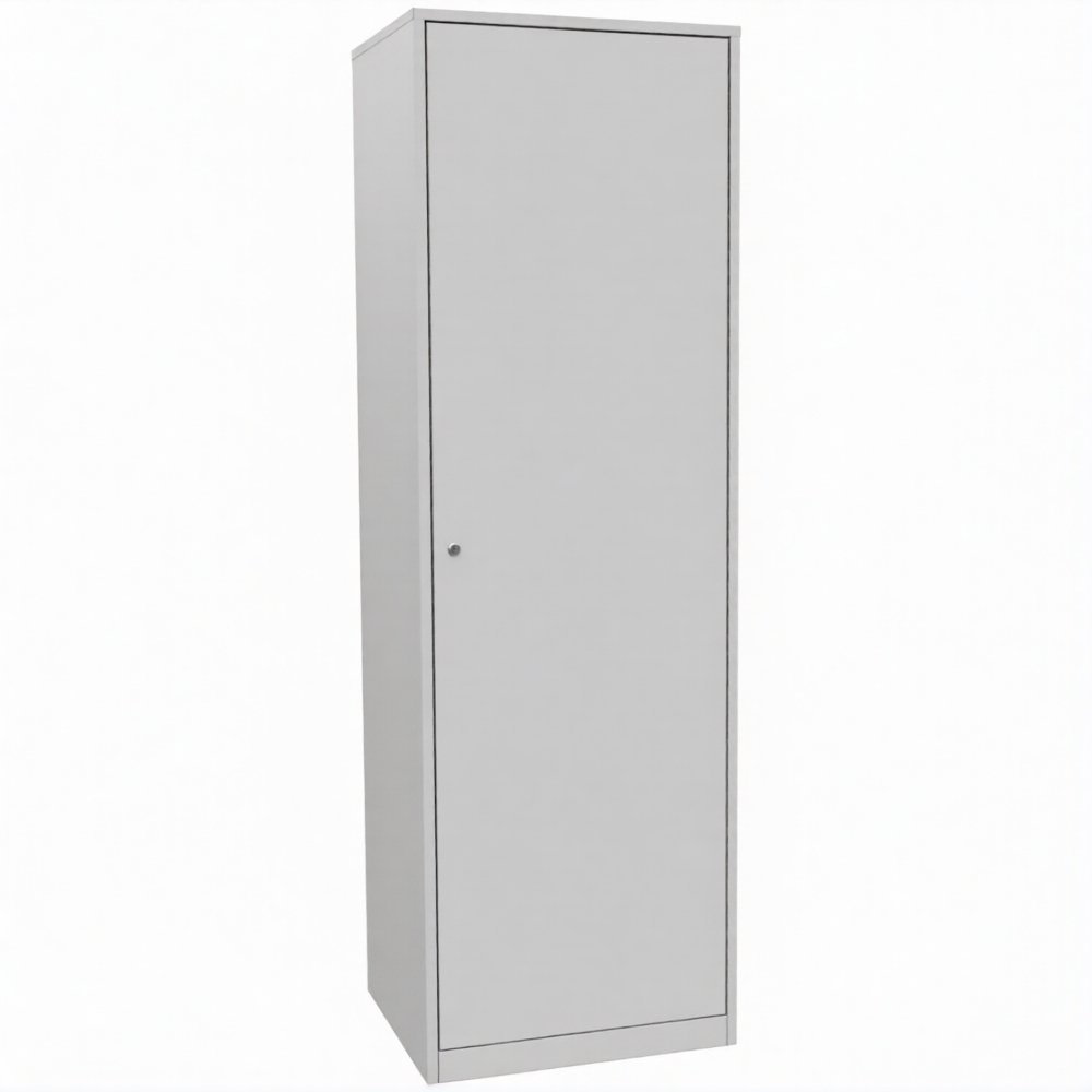 • Шкаф для сменной одежды и инвентаря одностворчатый металлический комплектуется 6-ю полками, отделением для обуви, крючками для одежды.