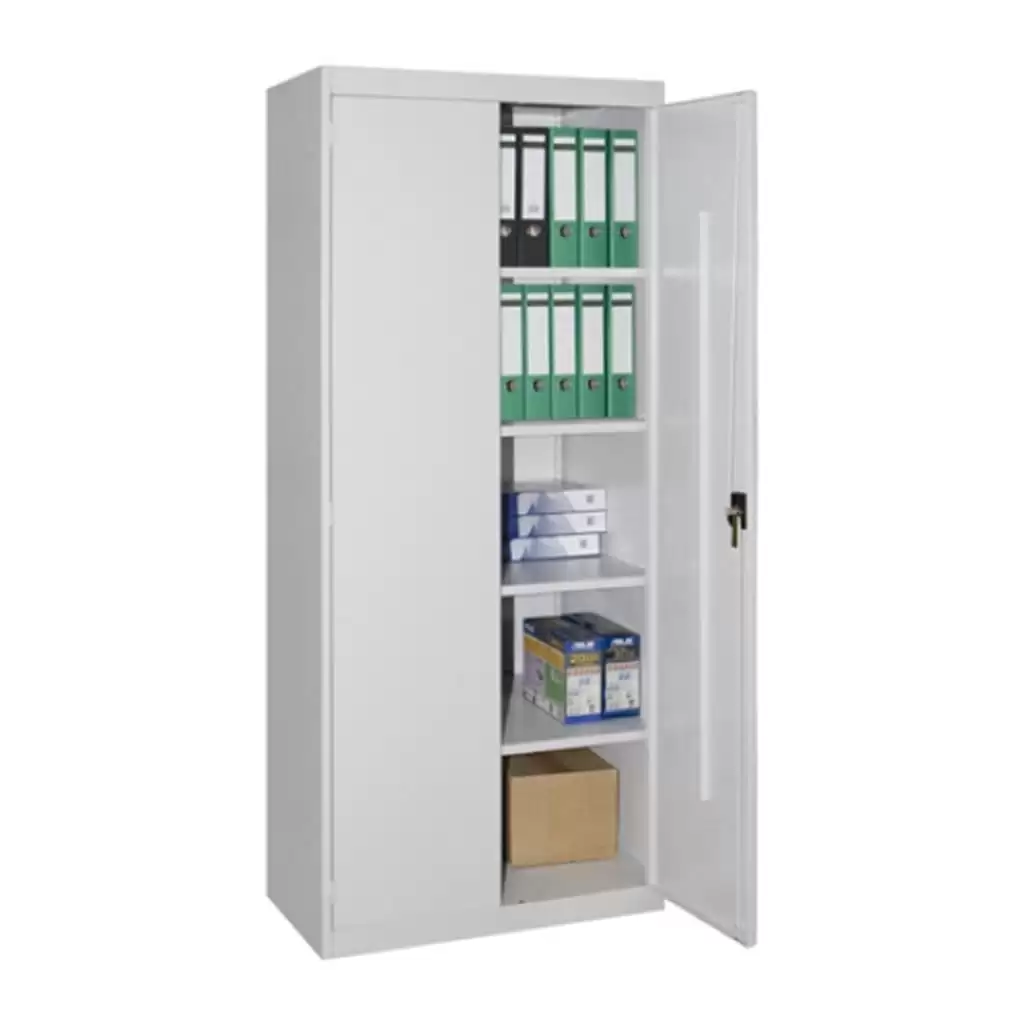 - Универсальность хранения — шкаф предназначен для размещения широкого спектра предметов: от документов и папок формата А4 до книг, канцелярских запасов, инструментов или средств уборки. Это делает его многофункциональным помощником для поддержания порядка.