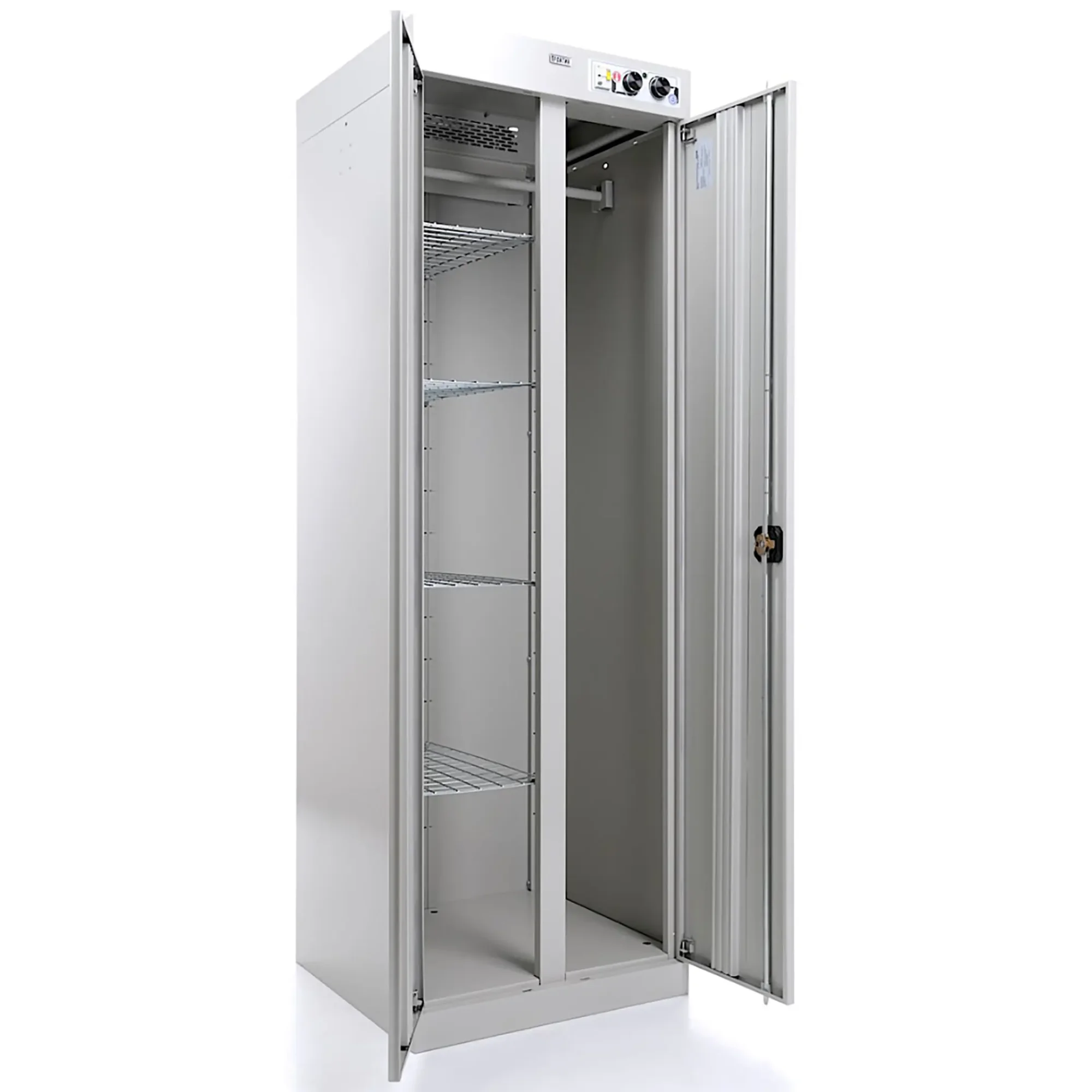 - Высокая производительность и вместимость — шкаф рассчитан на загрузку значительных объемов одежды и обуви за один цикл, что позволяет эффективно обслуживать большие коллективы на предприятиях, в спортивных комплексах или медицинских стационарах.